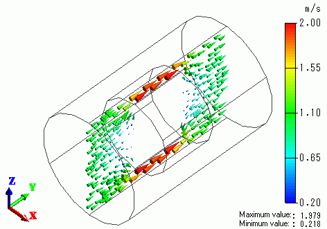 The distribution of the flow velocities is shown below.