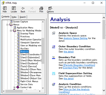 The help for [Analysis] will be shown.
