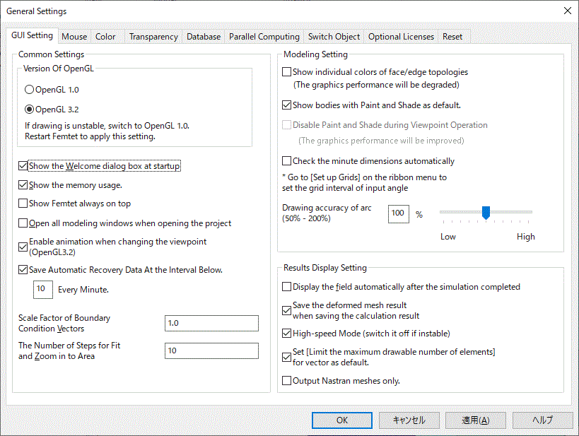 Various general settings can be done in this dialog box.