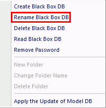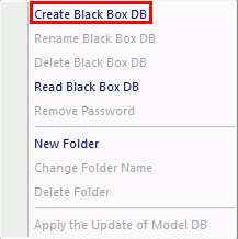Create Black Box DB: Right click on the Model DB tree and click [Create Black Box DB] on the menu. New black box DB is created.