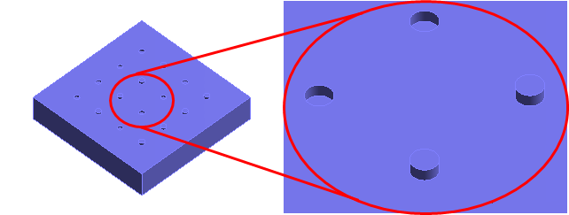 ・Set [Maximum Size of Minute Face] to 1.1×10-1(0.11) mm. -> The cylinders are removed leaving the holes. |