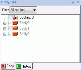 All the existing bodies are listed on the body tree. Left click the mouse to select the bodies.