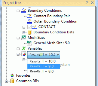 If [Save Results] is selected in the [Output Setting], the results can be displayed on the results window. Double-click results on the project tree to open the results. The results of each condition can be selected from the drop down list on the project tree.