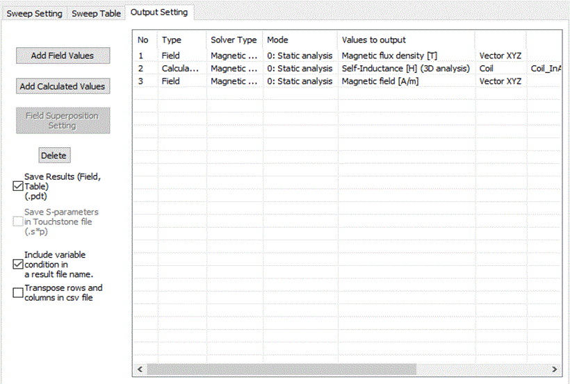 [Field Superposition Setting] dialog box will appear. It is applicable for the electromagnetic analyses. |