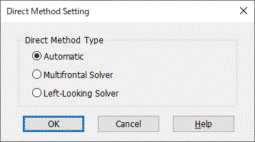 If Accelerator is enabled, Select the direct method solver that can perform faster calculations and run it. If there is sufficient memory capacity available, the LeftLooking solver will be selected to run; otherwise, the Multifrontal solver will be selected to run. If parallel discrete sweep is applied for the resonant or harmonic analysis, this Multifrontal solver will run.