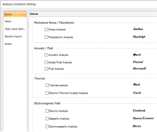 Home / How to Set Analysis Condition / List of Analysis Condition Tabs / Solver Tab