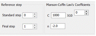 [Reference Step] sets the standard step and the final step to obtain the equivalent inelastic strain amplitude from the accumulated equivalent inelastic strain of the multi-step analysis. [Standard step] accepts an integer 0 or greater but smaller than the maximum step number. [Final step] accepts an integer greater than 0 up to the maximum step number.