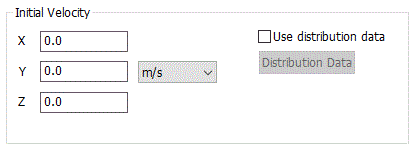 Available for the stress-transient analysis. The initial velocity can be set on each body attribute individually too. If "Use distribution data" is selected, Click the Distribution Data button to open the dialog box. (Note) The stress transient analysis is available in an optional package. |