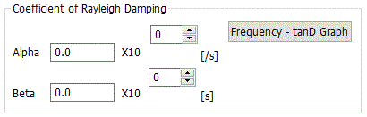 Click Frequency - tanD Graph to see the frequency response of tanδ where α is damping of low frequency vibration and β is damping of high frequency vibration. By setting β, you can remove noise of high-frequency vibration. The detail of the coefficient of Rayleigh damping is explained at [Stress Transient Analysis] and [Mechanical Damping] in the Technical Notes. (Note) The stress-transient analysis is available in an optional package. |