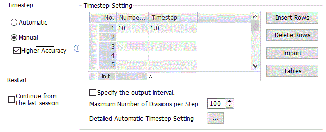 [Number of Calculation Steps] to be an integer equal to or greater than 1. [Output interval] to be an integer equal to or greater than 1. [Timestep] to be a real number greater than 0.