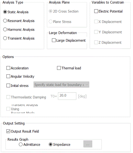 Home / How to Set Analysis Condition / List of Analysis Condition Tabs / Piezoelectric Analysis Tab