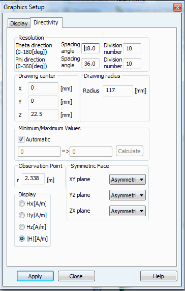 The display setting for the directivity can be changed on the [Directivity] tab. Depending on the analysis type, the setting items vary.