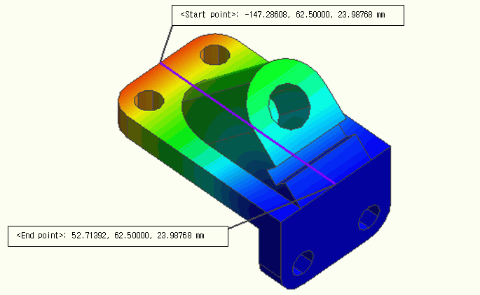 Instead of numerical entry, the points can be specified by mouse. Vertices, nodes or edge of the model can be the startpoint and endpoint. Select either [Points] or [Edge] by clicking each button.
