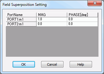 On the [Analysis Condition Setting] dialog box, go to [Harmonics Analysis] tab, and select "Enable each port's individual weight setting for superposed fields display".