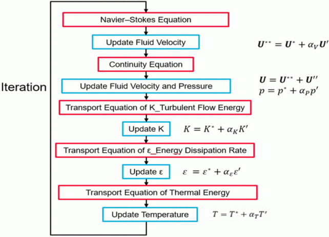 The analysis sequence of the turbulent flow and the fluid-thermal bidirectional coupled analysis is shown below.