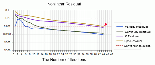 ・ The residual distributions of the flow velocity, continuity, K, and ε can be viewed