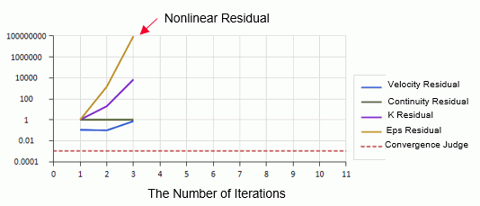 The residual does not become smaller than the value for convergence judgment within the specified number of iterations (Non-convergence)