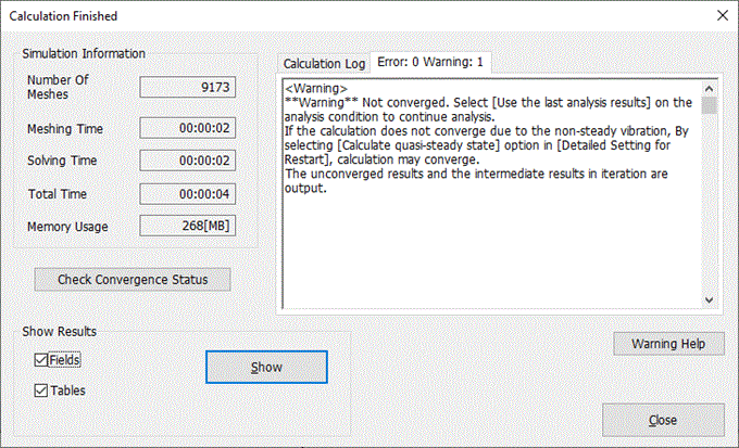 It is also possible to continue the analysis by modifying the relaxation factor or the value for convergence judgment.