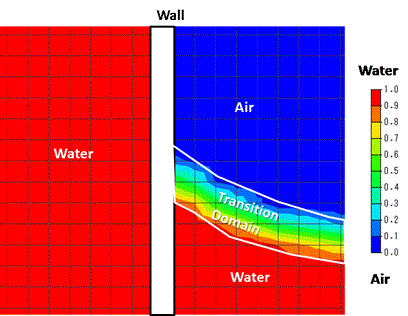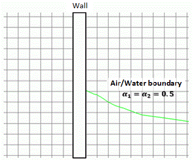 Air phase: α1 = 1.0 Water phase: α2 = 0.0 |