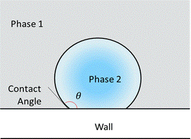 In Analysis Condition > Fluid tab > [Multiphase Flow Setting [Wall Face]], sets the contact angle of the wall face.
