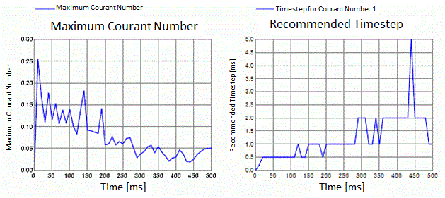 The maximum Courant number in the analysis domain and the recommended timestep calculated from the maximum Courant number can be checked.