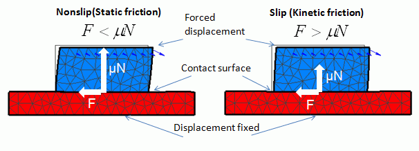 There are two types of contact as listed below, where F is the contact force, μ is the coefficient of friction and N is the normal component of the contact force.