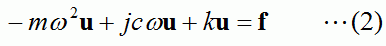 The external force f includes body and surface forces. It is zero in resonant analysis.