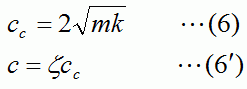 where cc is the critical coefficient of damping and ζ is the damping ratio.