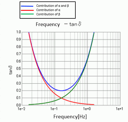 As an example, frequency dependency of tanδ is shown below with α=0.1[/s] and β=0.1[s]