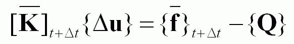 {Q} is the internal force vector, which represents the strains and stresses resulting from the previous step.