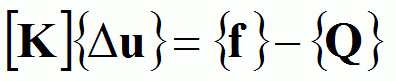 The matrix equations below are solved to obtain the displacement increment.