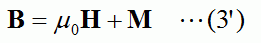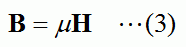 Equation (3) defines the relation between the material's magnetic flux density B and magnetic field H.
