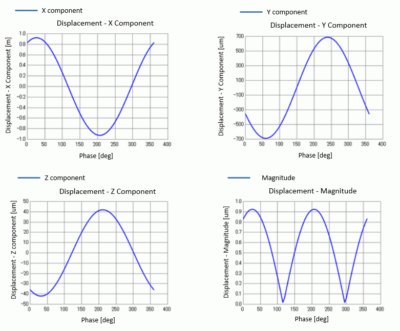 For example, X, Y, Z components and magnitude of displacement vector are shown below.