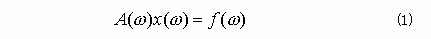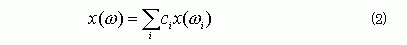 Ci's are coefficients, which are obtained by the least squares method. For some frequencies, x(ω)'s are obtained by solving Equation (1). For others, x(ω)'s are approximated from the x(ω)'s which have been already obtained from Equation (1). Equation (1) must be solved for the minimum frequency first. After that, it will be solved for the frequencies which have the large residual shown in Equation (3).