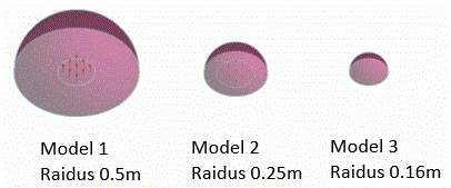 The driving source is a circle with radius of 0.15 m for all three models.