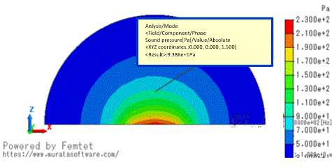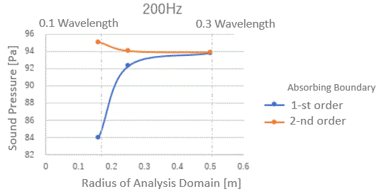 As the graph shows, the sound pressure converges to a certain value as the analysis space expands. The calculation error is large with a small analysis domain.