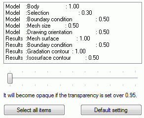 The items to set the transparency are listed. Multiple items can be selected with the <Shift> key or the <Ctrl> key.