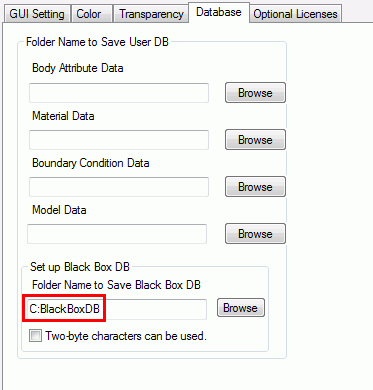 Select "Two-byte characters can be used." to allow the use of two-byte characters for the names of black box DBs and model data.