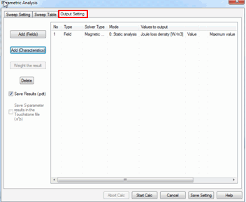 Set up the results to output on the [Output Setting] tab. Multiple number of results can be set up. See [Output Setting] for the detail.