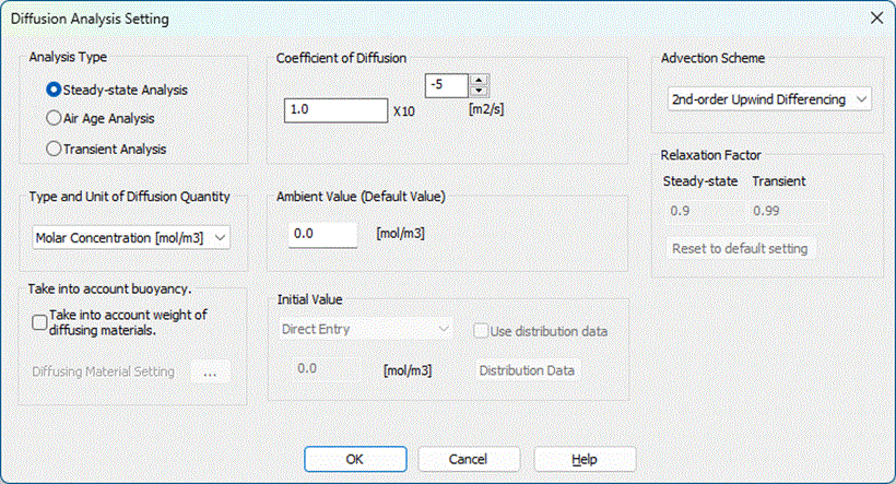 Home / How to Set Analysis Condition / Fluid Analysis [Bernoulli] / Diffusion Analysis Setting