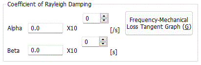 Click Frequency-Mechanical loss tangent Graph to see the frequency response of mechanical loss tangent, where α is damping of low frequency vibration and β is damping of high frequency vibration. By setting β, you can remove noise of high-frequency vibration. The detail of the coefficient of Rayleigh damping is explained at [Stress Transient Analysis] and [Mechanical Damping] in the Technical Notes. (Note) The stress-transient analysis is available in an optional package. |