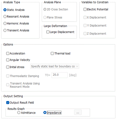 Home / How to Set Analysis Condition / List of Analysis Condition Tabs / Piezoelectric Analysis Tab