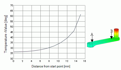 TypeFor the horizontal axis, select either Distance, Mode (frequency, time, step, etc), or Phase. Temperature can be the horizontal axis in case of thermal load analysis. To make it selectable, set thermal load (reached temperature). Location for EvaluationSelect from straight line, edge, or arc.