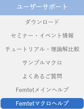 これまで、FemtetをインストールしたPCからしかマクロヘルプを確認できませんでしたが、ホームページからも確認が可能となりました。(ユーザーサポート→Femtetマクロヘルプ)