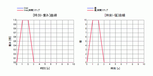 図:重み関数の設定(0[s]から3[s]の間に拡散物質が流入します)