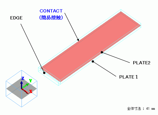 例題19とは違い2枚の板(PLATE1,PLATE2)には共通の線膨張係数を適用し、接合部(EDGE)には板材料の