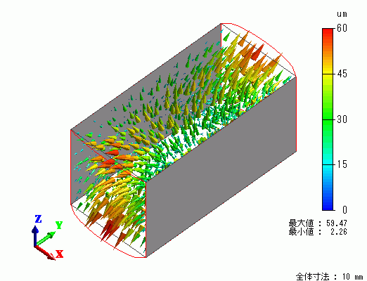 UY、UZのチェックを外し、Y方向、Z方向の変位を自由にした場合の結果を示します。