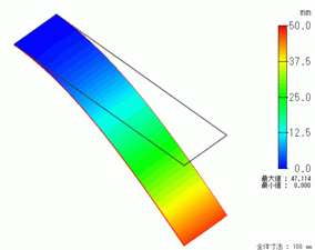 時刻7200s(120℃で、約1hrたわみ保持をしたあと)の変位図を示します。