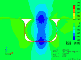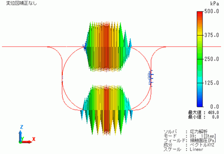 次に、荷重100%のときの接触面圧をベクトル図で表示した結果を示します。