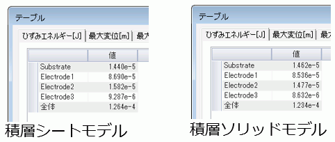 ボディ毎のひずみエネルギーの計算値テーブル結果を示します。